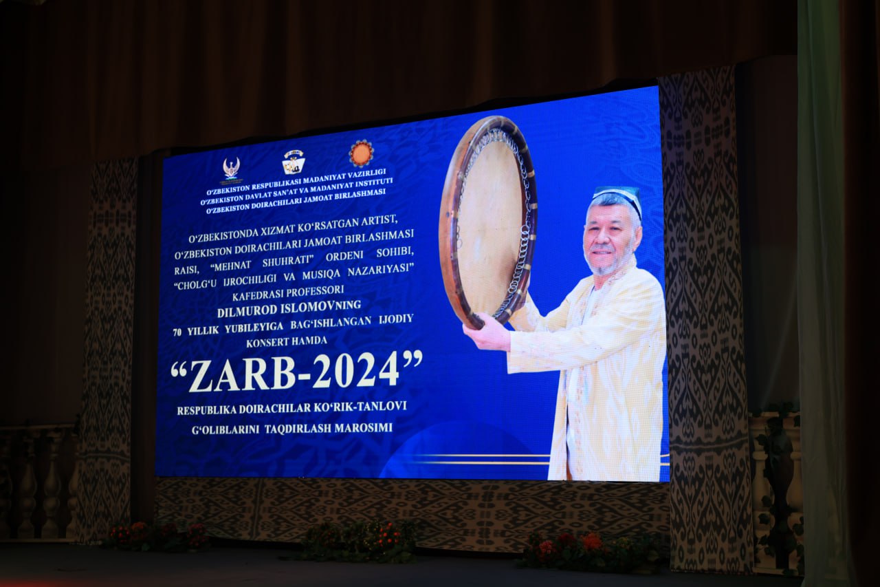 O‘zbekiston davlat san’at va madaniyat instituti o‘quv teatrida O‘zbekistonda xizmat ko‘rsatgan artist, cholg‘u ijrochiligi va musiqa nazariyasi kafedrasi professori Dilmurod Islomovning 70 yillik yubileyiga bag‘ishlangan ijodiy konsert hamda «Zarb-2024» Respublikasi doirachilar ko‘rik-tanlovi g‘oliblarini taqdirlash marosimi bo‘lib o‘tdi.