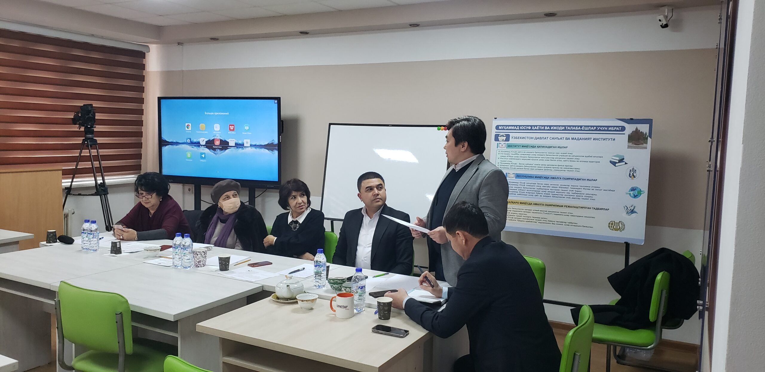 O‘zbekiston Respublikasi Vazirlar Mahkamasining 2017-yil 22-maydagi «Oliy ta’limdan keyingi ta’lim tizimini yanada takomillashtirish chora-tadbirlari to’g’risida»gi 304-sonli qarori bilan tasdiqlangan Nizom asosida O‘zbekiston davlat san’at va madaniyat institutida 2024-yil 2-chorak uchun mustaqil izlanuvchi (DSc/PhD)ga hujjatlari qabul qilingan talabgorlar uchun suhbat jarayoni tashkil etildi.