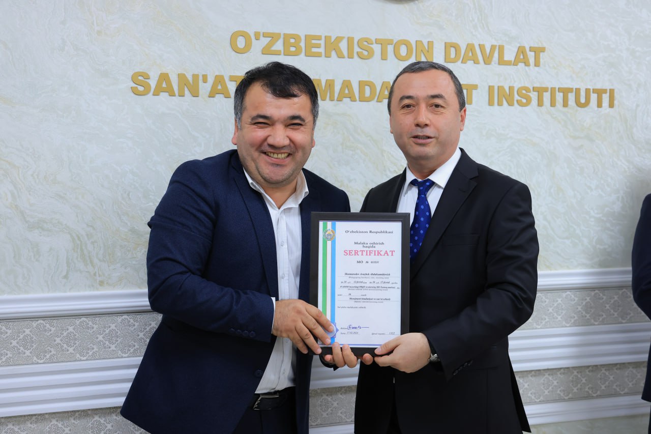 Tadbir davomida O‘zbekiston davlat san’at va madaniyat instituti qoshida tashkil etilgan malaka oshirish tarmoq markazida tahsil olgan boshqarma boshliqlari sertifikat bilan taqdirlanib, ularga minnatdorchilik bildirildi.