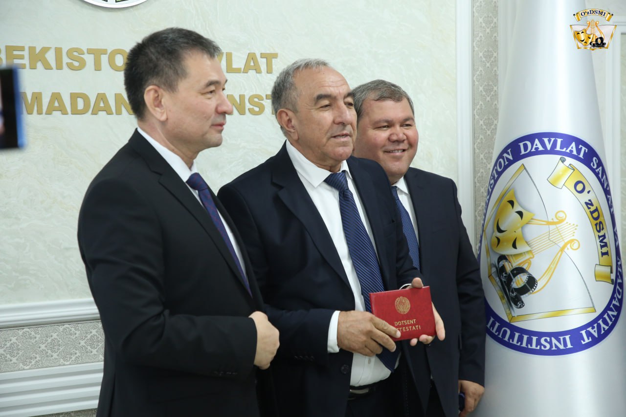 Bugun O‘zDSMIda madaniyat va san’at sohasi xodimlariga professor va dotsent ilmiy unvonlarini berish marosimi bo‘lib o‘tdi. Unda Madaniyat vazirligi vakillari, xalq artistlari va hofizlari, olim va ziyolilar, el suygan san’atkorlar ishtirok etdi.