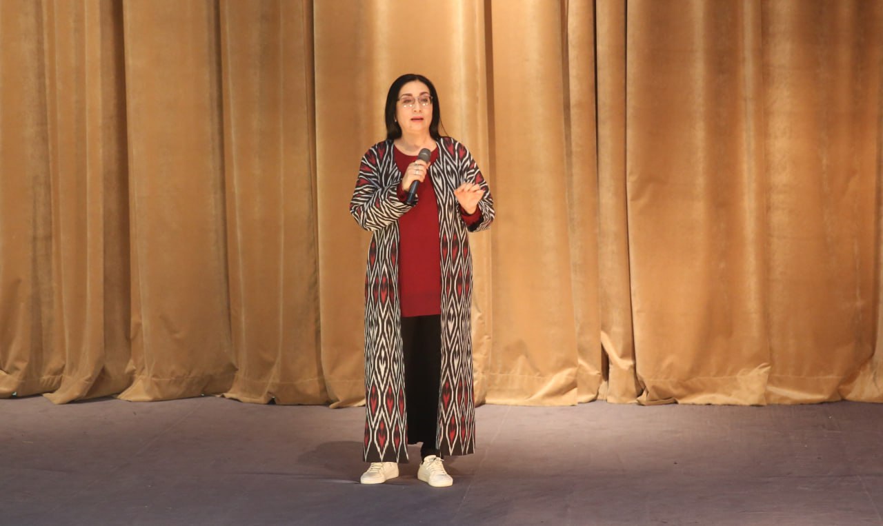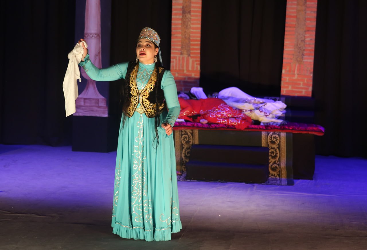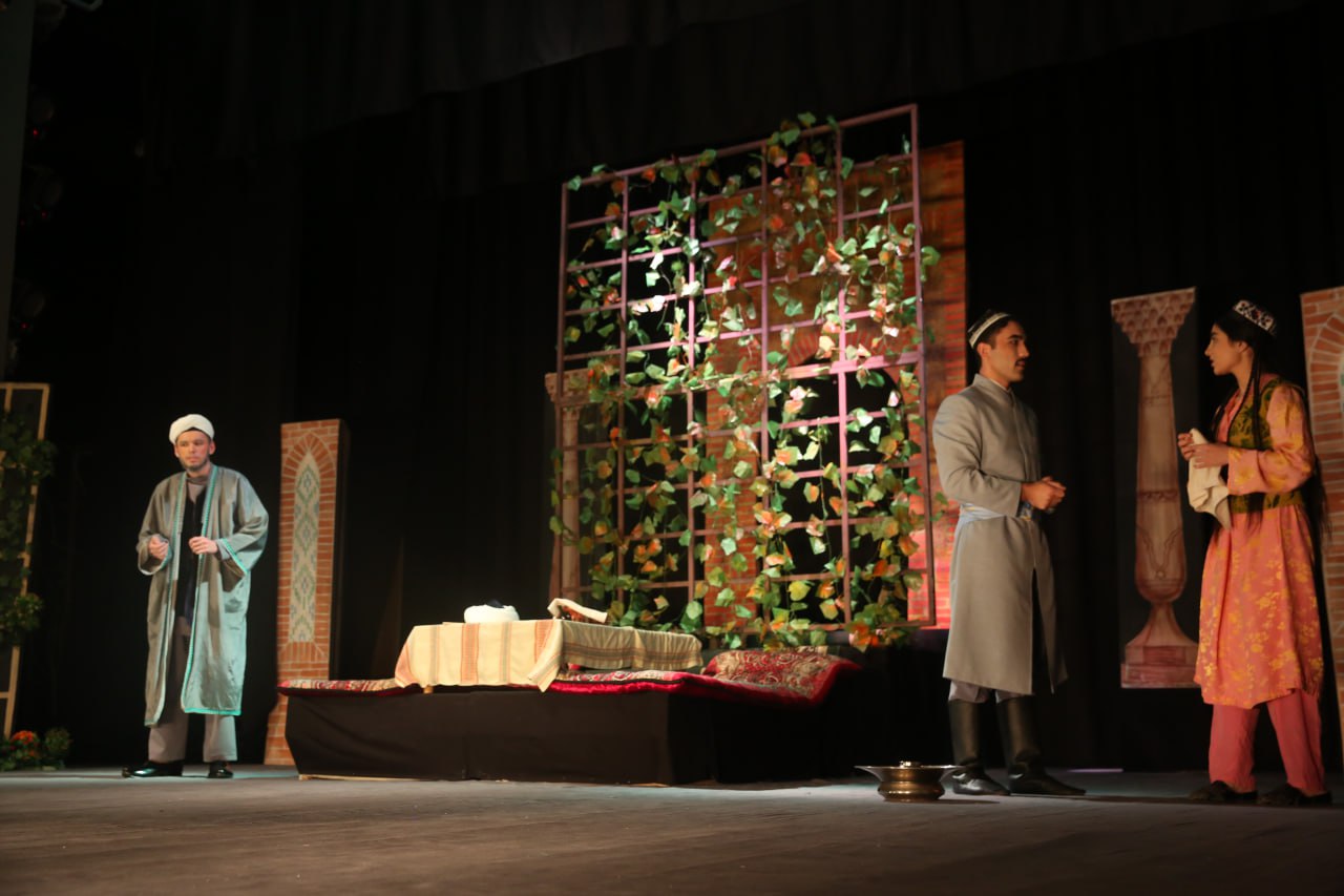 O‘zbekistonda xizmat ko‘rsatgan artist, dotsent Nodira Mahmudova rejissyorligida sahnalashtirilgan spektakl o‘quv teatriga yig‘ilgan tomoshabinlarga manzur bo‘ldi.