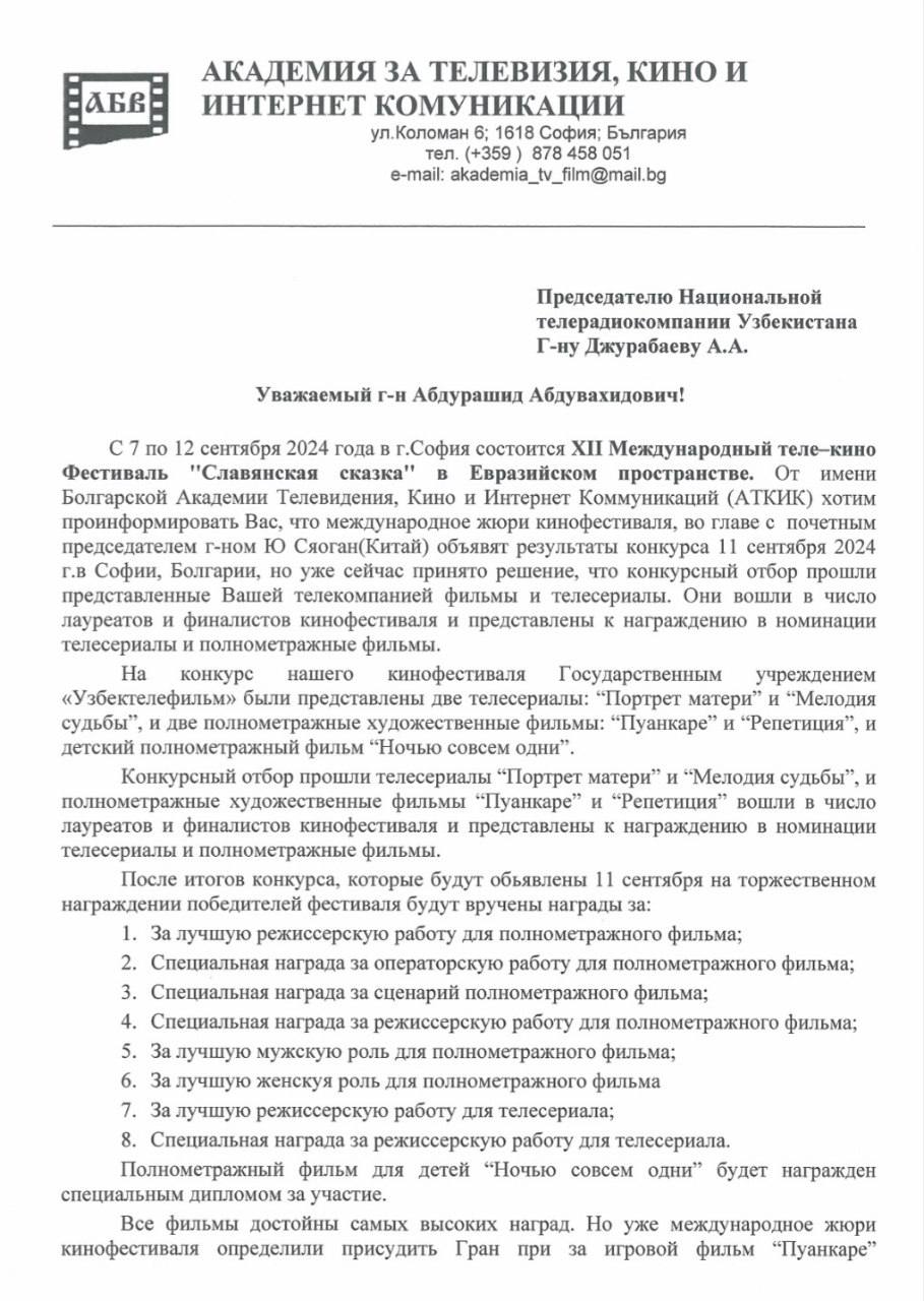 Bolgariya poytaxti Sofiya shahrida joriy yilning sentyabr oyida bo‘lib o‘tadigan kino-telefestivalning yopilish marosimida mazkur unvon o‘z egasiga topshiriladi.