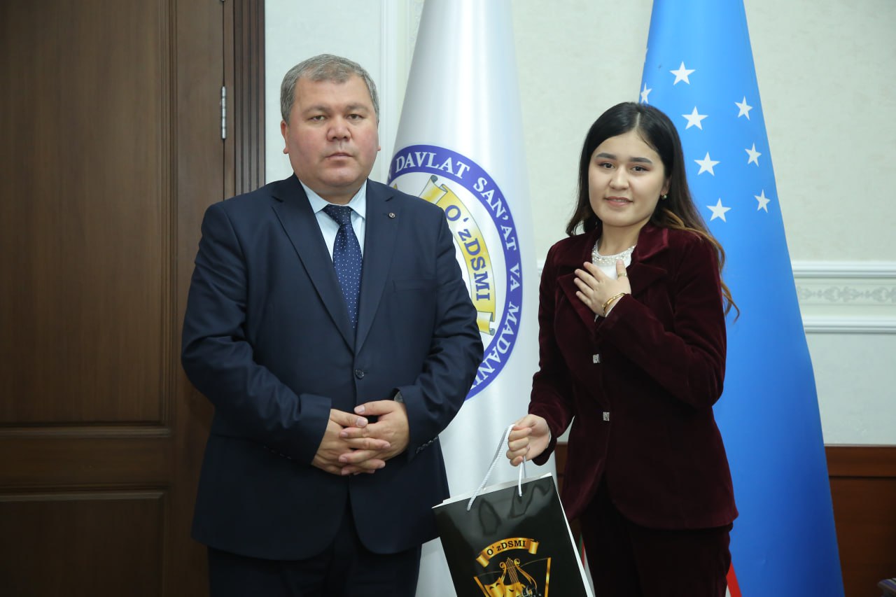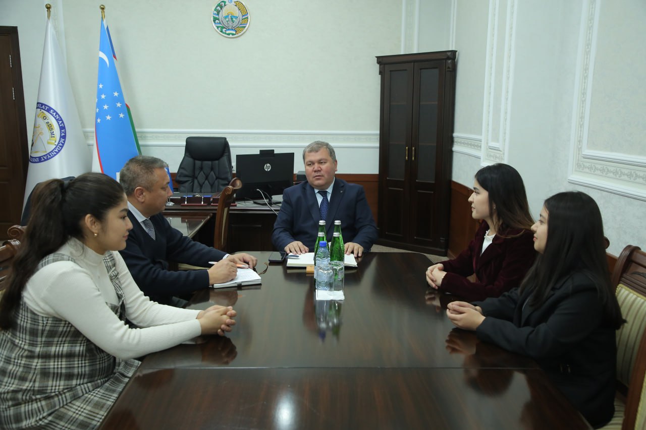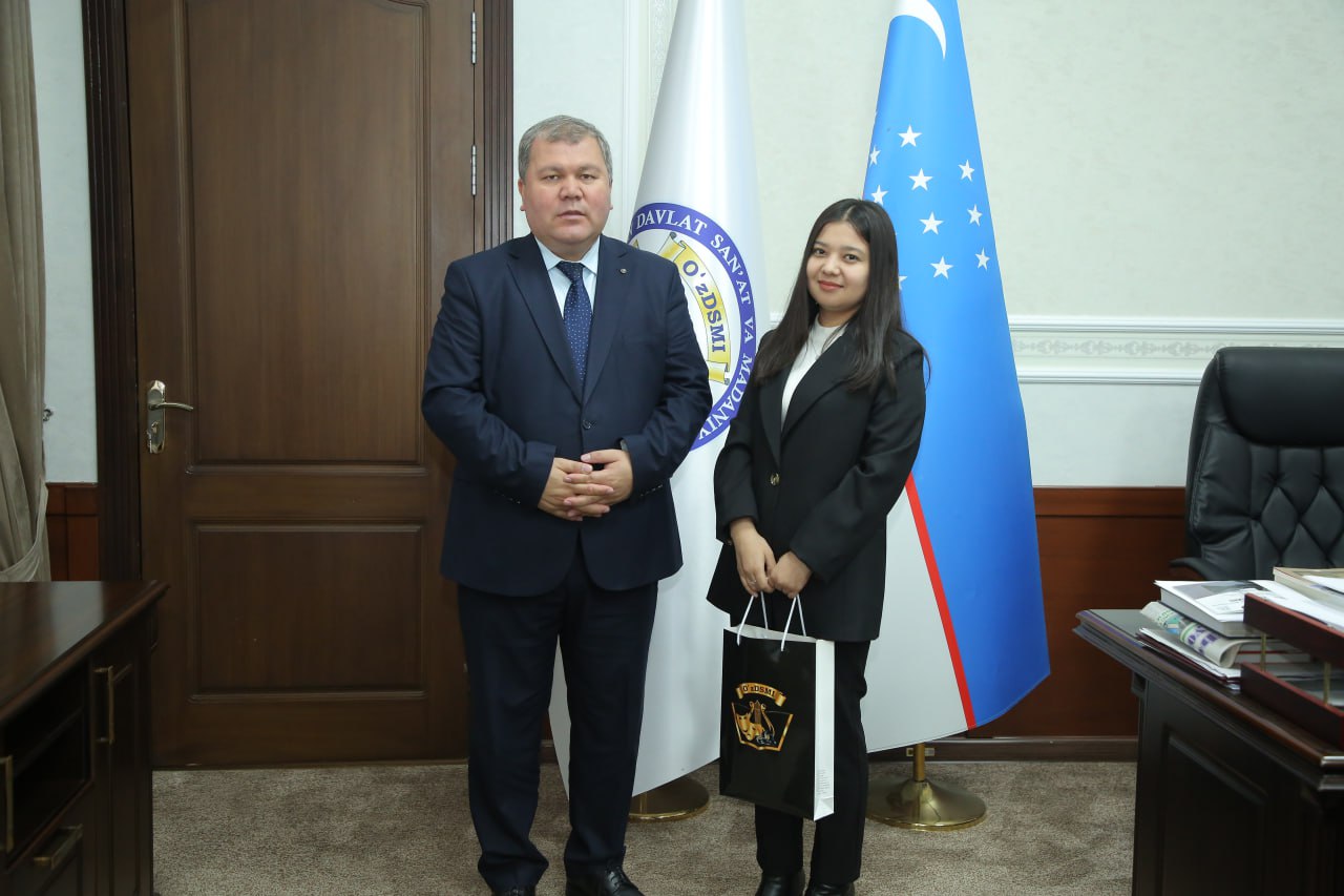 Muloqot davomida rektor mazkur yutuq egalarini tabriklab, ularning ilmiy-ijodiy faoliyatida muvaffaqiyat tiladi. Shu bilan birga, talabalarga esdalik sovg‘alari taqdim etildi.