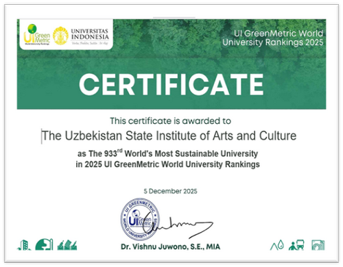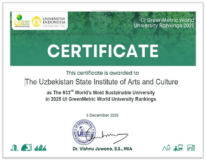 Деятельность института также отмечена в международном рейтинге “World University Rankings for Innovation (WURI)”. Данный рейтинг является глобальным рейтингом, организованным ведущими университетами Америки, Азии, Европы и Африки, и оценивает результаты высших учебных заведений в области инновационного образования, научных исследований, предпринимательства и взаимодействия с обществом. Рейтинг WURI анализирует инновационные проекты университетов по 16 категориям с целью определения их реального вклада в развитие общества и промышленности. При оценке особое внимание уделяется таким направлениям, как индустриальные программы, стартап-инициативы, предпринимательство, этические ценности и социальная ответственность, а также академическая мобильность и открытость студентов. В рейтинге WURI 2025 высокие позиции заняли Университет Калифорнии (Лос-Анджелес, США), Университет Путра Малайзии (Малайзия) и Католический университет Кореи (Корея). Кроме того, Государственный институт искусств и культуры Узбекистана во второй раз вошёл в ТОП-1000 международного рейтинга “UI GreenMetric World University Ranking 2025”, заняв 933-е место. В 2025 году в данном рейтинге приняли участие 1745 университетов мира. Рейтинг оценивает вклад университетов в экологическую устойчивость и реализацию принципов зелёной экономики в соответствии с Целями устойчивого развития ООН. Результаты рейтинга формируются по направлениям Setting & Infrastructure, Energy & Climate Change, Waste, Water, Transportation и Education & Research. В данном рейтинге приняли участие 80 вузов Республики Узбекистан, из которых 37 вошли в список ТОП-1000. Институт также занял 33-е место среди вузов страны. Кроме того, Государственный институт искусств и культуры Узбекистана был включён в список “Schools of Excellence in Arts & Luxury” международного рейтинга Eduniversal Ranking по направлению искусства. Основанный во Франции рейтинг Eduniversal является одним из престижных международных рейтингов, оценивающих высшие учебные заведения, бизнес-школы, программы магистратуры и MBA по всему миру. Система рейтинга оценивает университеты по таким критериям, как академическая репутация, качество образовательных программ, карьерные возможности выпускников и удовлетворённость студентов. Рейтинг Eduniversal охватывает более 154 стран, и в издании 2025 года участвовало более 5800 магистерских и MBA-программ и более 1000 бизнес-школ. Примечательно, что по направлению “Arts & Luxury” рейтинга “Schools of Excellence” 2025 года институт занял 3-е место в регионе Центральной Азии. Эти результаты свидетельствуют о международном признании качества образования, научного потенциала и инновационной деятельности института и способствуют дальнейшему укреплению его позиций в глобальном академическом сообществе. |