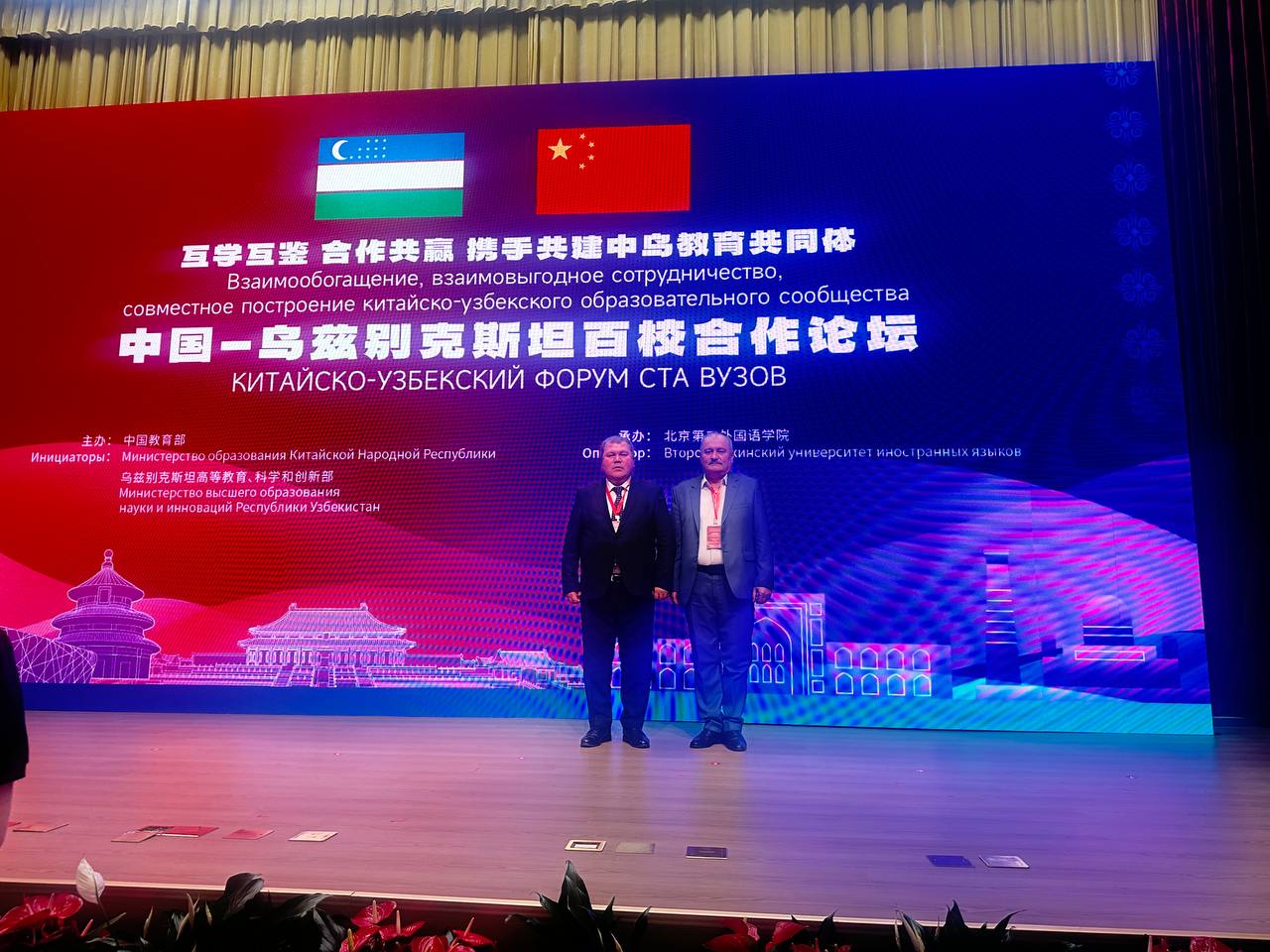 Xitoy poytaxti Pekin shahrida o‘tkazilayotgan forumda O‘zbekiston davlat san’at va madaniyat instituti rektori v.b. Eldor Shermanov hamda Ilmiy ishlar va innovatsiyalar bo‘yicha prorektor Sobir Jumayev ishtirok etmoqda.